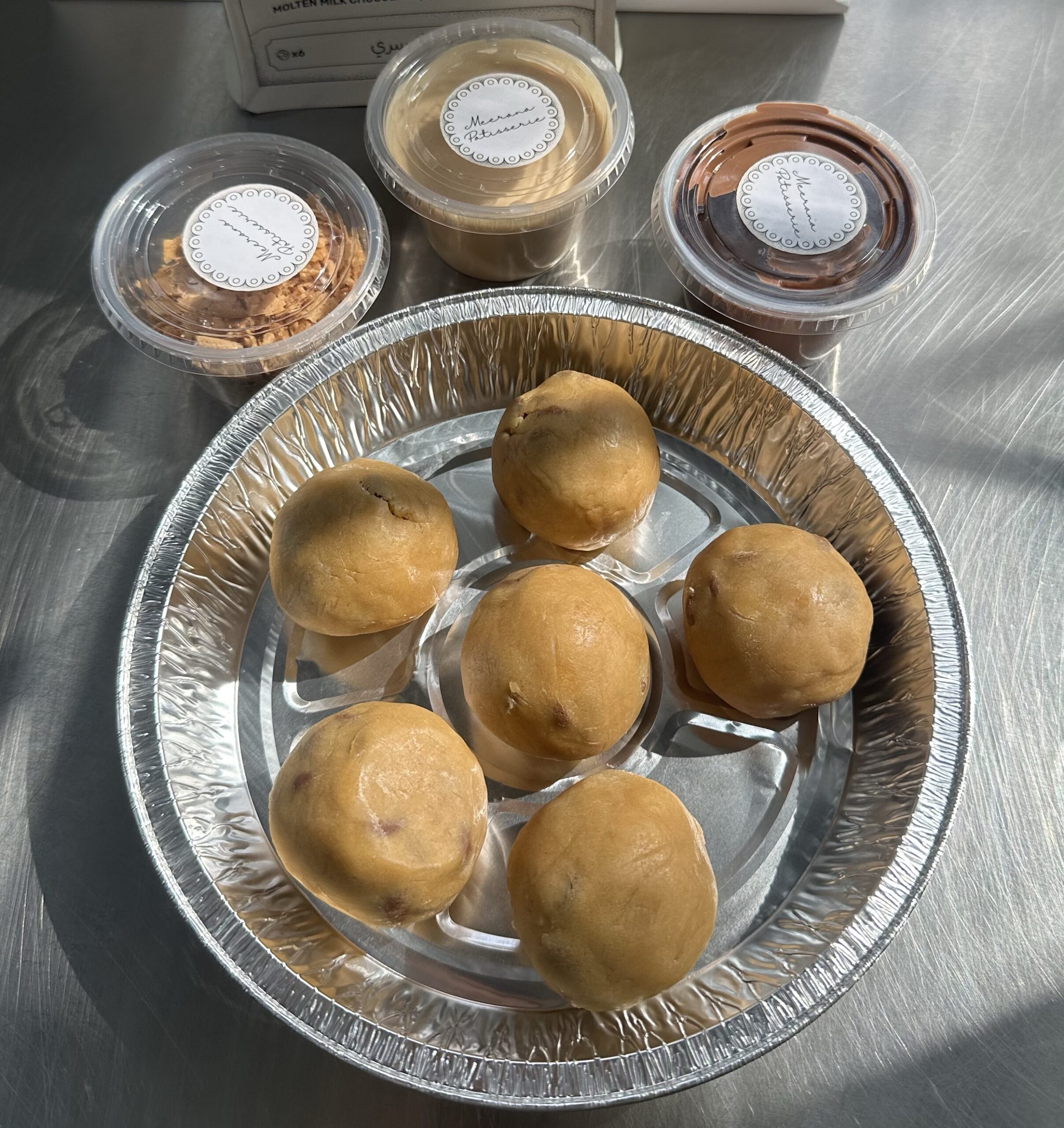 عجينة كوكيز مجمّدة تحتوي على 6 قطع من عجينتنا الكلاسيكية، و كل قطعة محشوة بشوكولاتة الحليب البلجيكية. تأتي مع تعليمات الخَبز على الجهة الخلفية لتحصلوا على تجربة المولتن كوكيز الساخن مباشرة من الفرن.