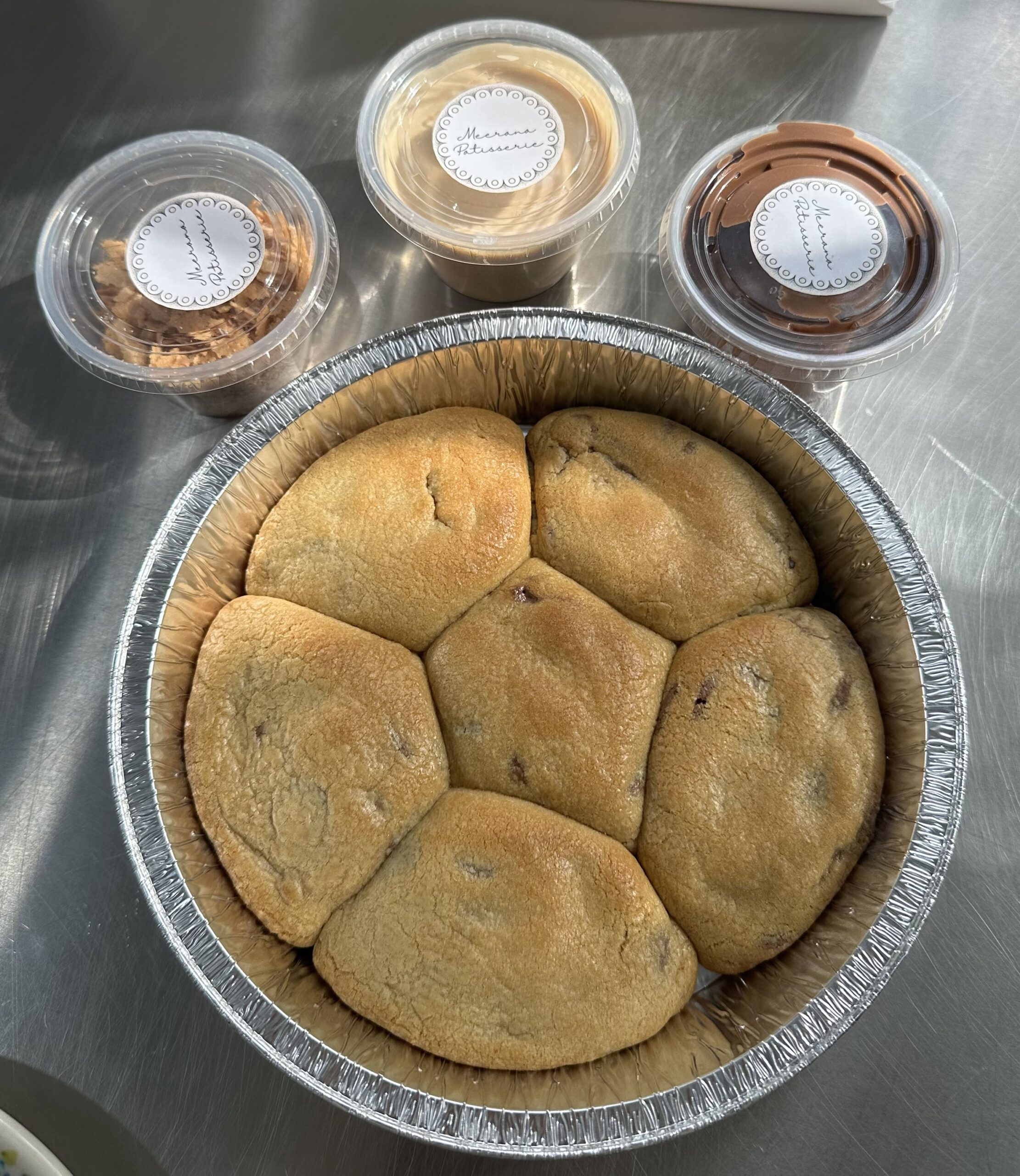 اخبز الكوكيز باستخدام الصينية المرفقة واتبع التعليمات الموجودة على خلف الباكج. وبعد اخراجها من الفرن وهي ساخنة اغرفها في طبق وأضيف عليها الصوصات المفضلة لديك لتحصل على تجربة لذيذة ومميزة. ويمكنك تسخين الصوصات في المايكرويف لمدة 15 ثانية قبل التقديم.